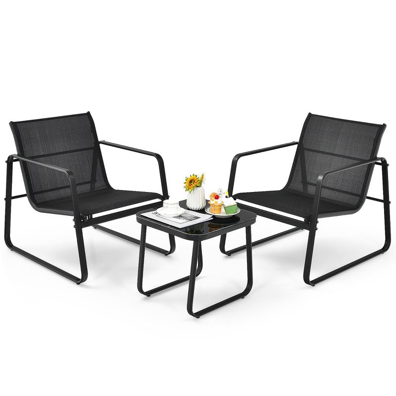 Costway 3PCS Patio Bistro Furniture Set Glass Top Table Garden Deck Black