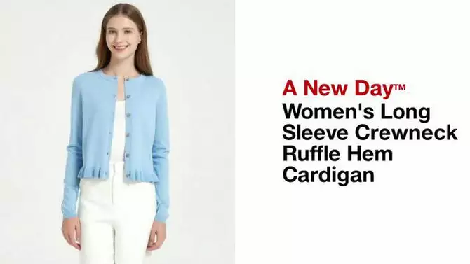 Women's Long Sleeve Crewneck Ruffle Hem Cardigan - A New Day™ Ivory M