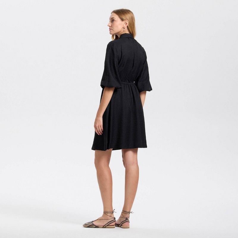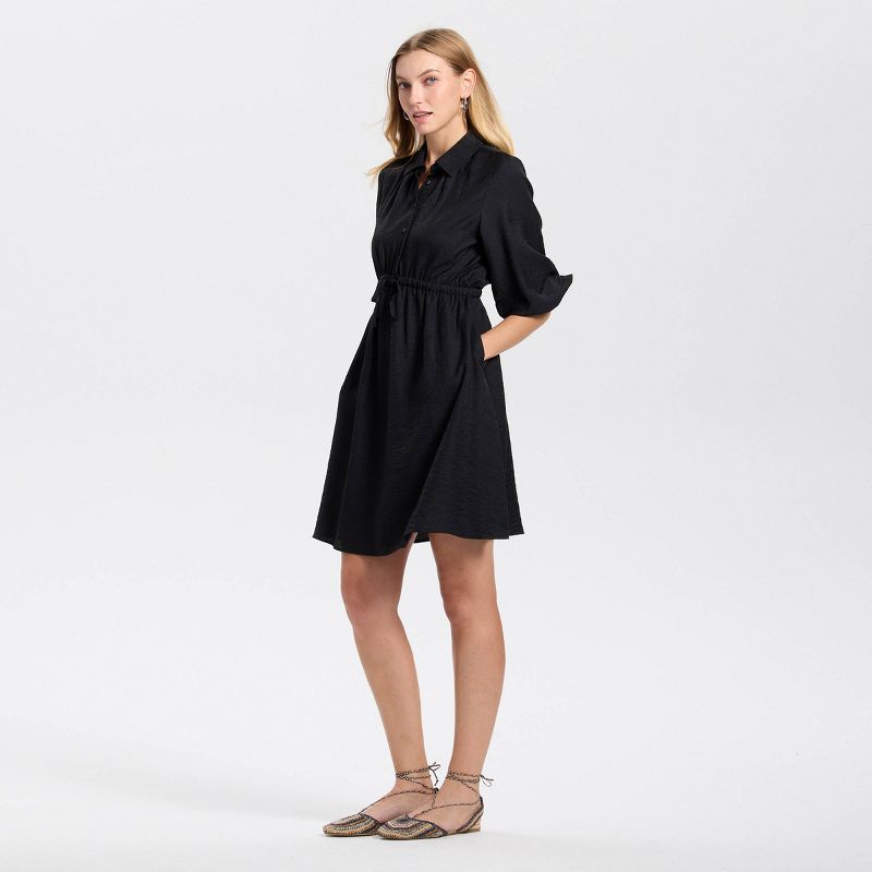 Women's Elbow Sleeve Drawstring Waist Mini Shirtdress - Universal Thread™ Black XL
