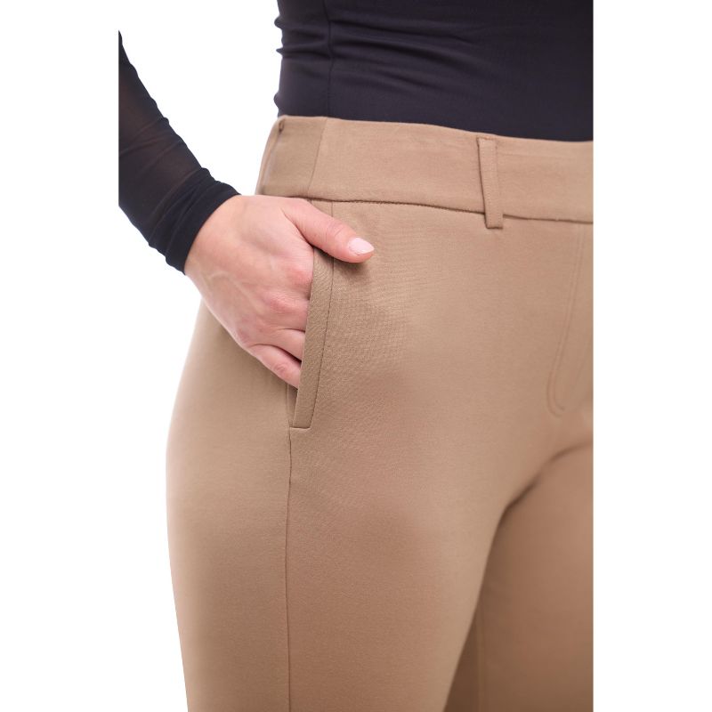 Rekkuna Women's Pull-On Ankle Work Pants – Mid-Rise Slim Straight Office Yoga Trousers with Pockets and Belt Loops - Dark Sand, Medium