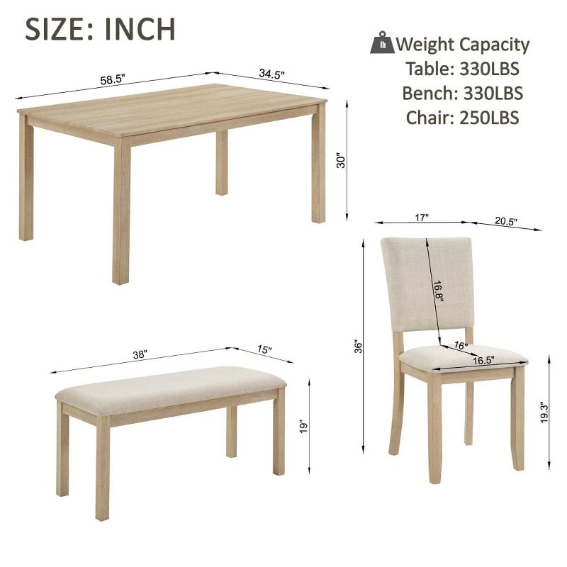 6-Piece Modern Wood Dining Table Set with Bench and 4 Upholstered Chairs, Modern Rectangular Kitchen Table Set for Dining Room - Panipeachy