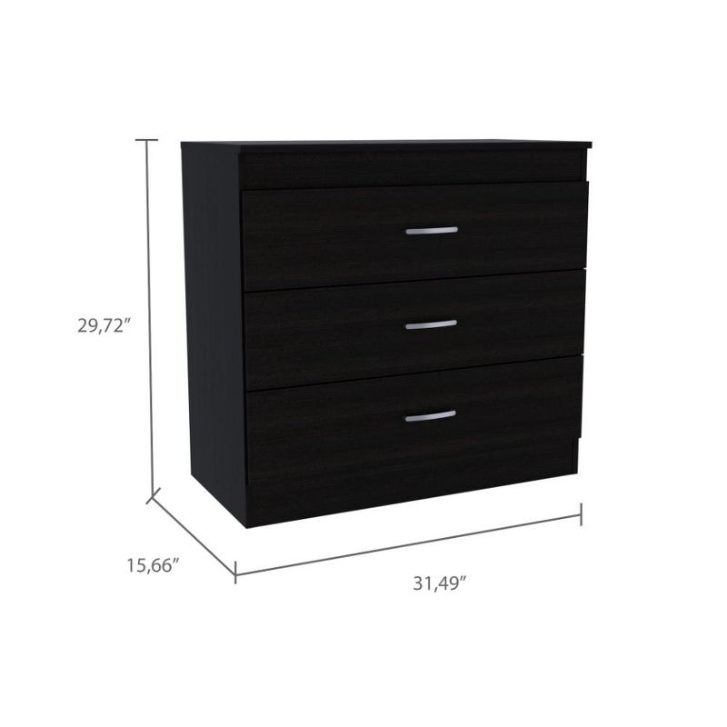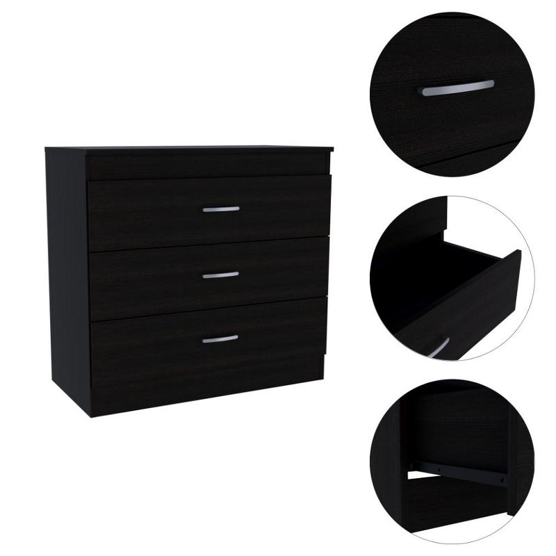 Kumasinova 3-Drawer Dresser for Bedroom, Modern Chest of Drawers,Particle Board Finish Storage Dresser,Bedroom Furniture,Floorstanding,Black