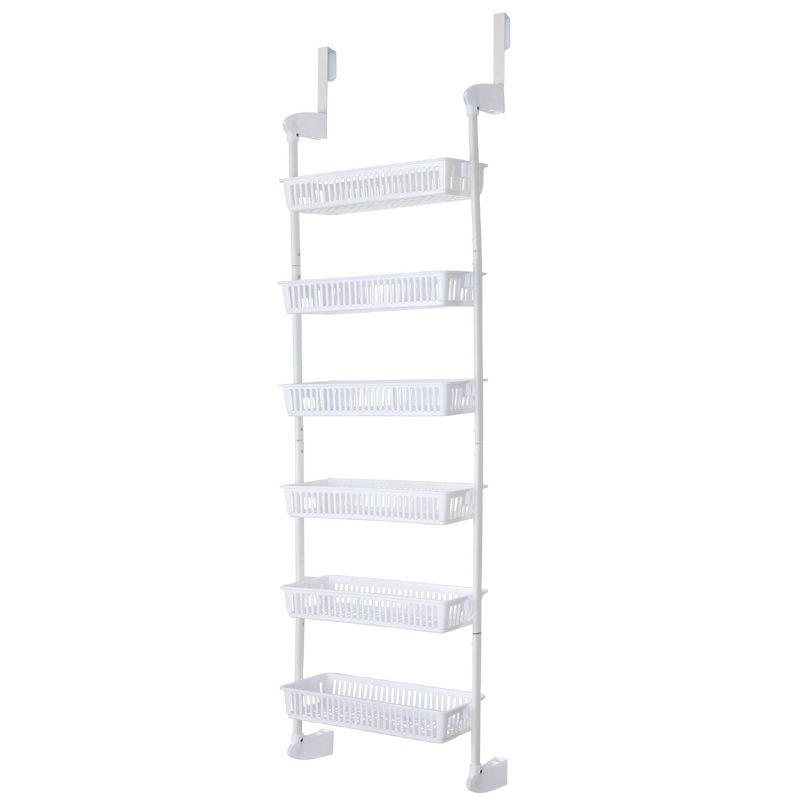 Smart Design Steel 6-Tier Over the Door Pantry Organizer - White: Back of Door Storage for Kitchen Cabinet Organization