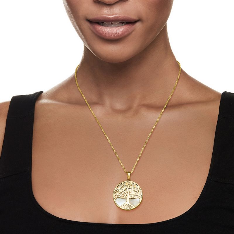 Ross-Simons Mother-Of-Pear Tree Of Life Pendant Necklace in 18kt Gold Over Sterling Size 18