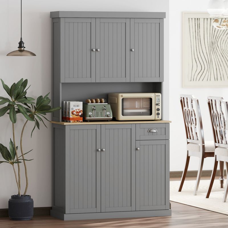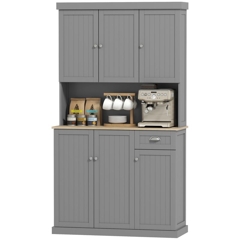 HOMCOM 71" Buffet with Hutch, Modern Kitchen Pantry Storage Cabinet with Microwave Oven Countertop, Drawer, Gray