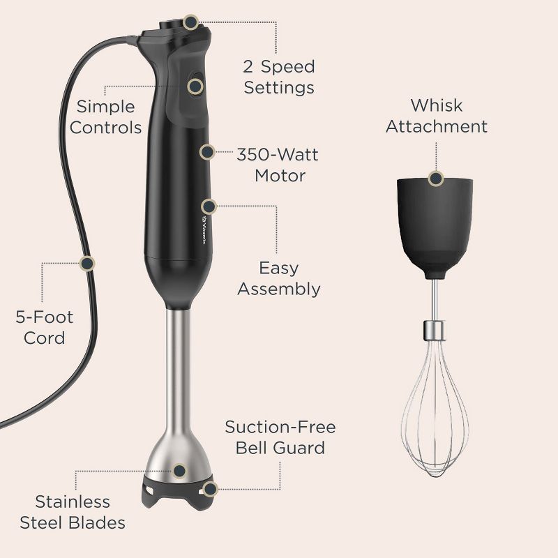 Vitamix 2-Speed Hand Immersion Blender Bundle with Whisk and Jar Black: Stainless Steel, 350W, Hand Held, Food Processor