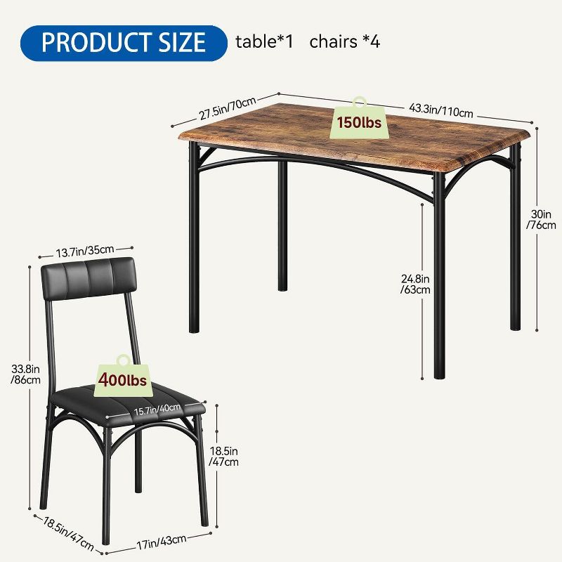 5-Piece Dining Table Set for 4, Rectangular Kitchen Table with Upholstered Chairs, Dining Set for Small Space & Apartment, Retro Brown