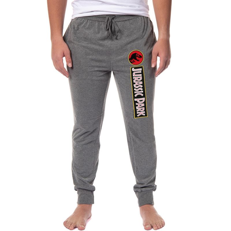 INTIMO Jurassic Park Mens' Dinosaur Film Movie Title Logo Sleep Jogger Pajama Pants Medium Grey
