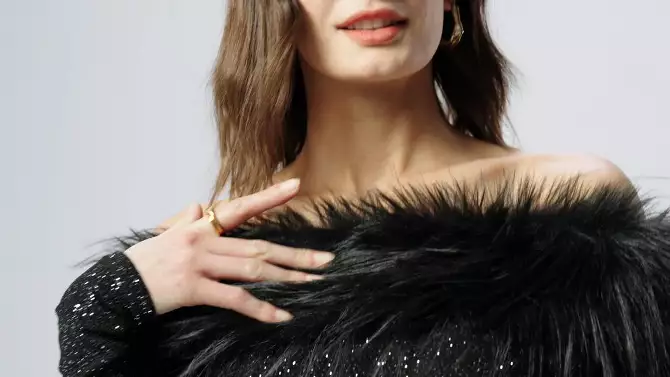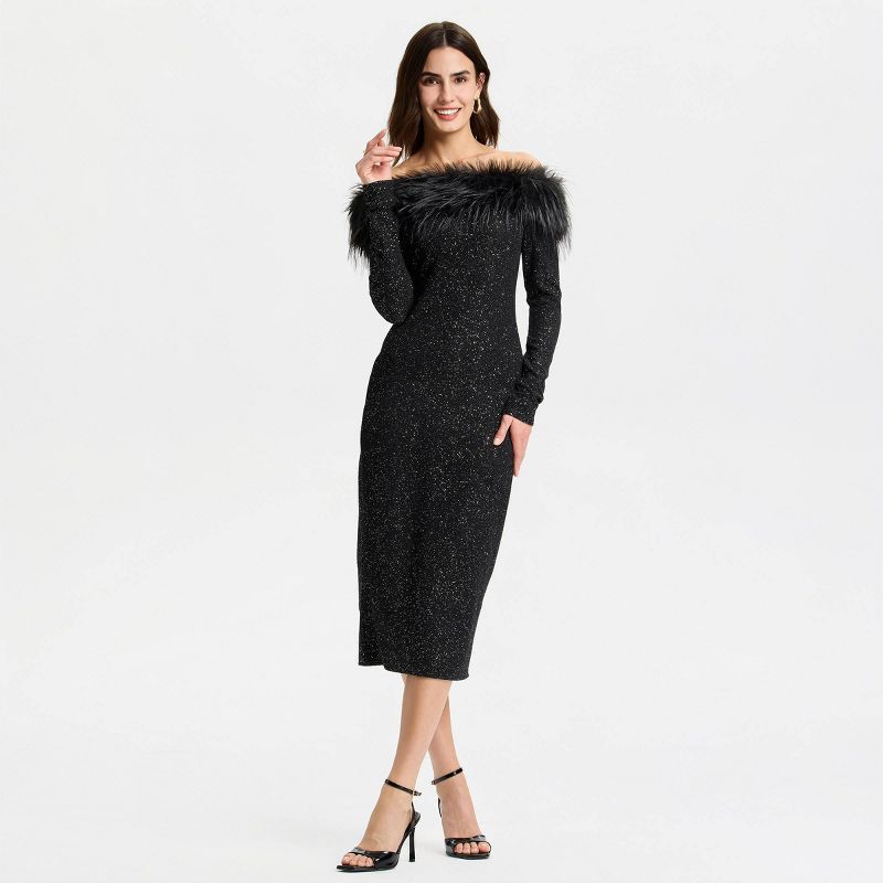 Women's Long Sleeve Faux Fur Off the Shoulder Midi Dress - A New Day™ Black S