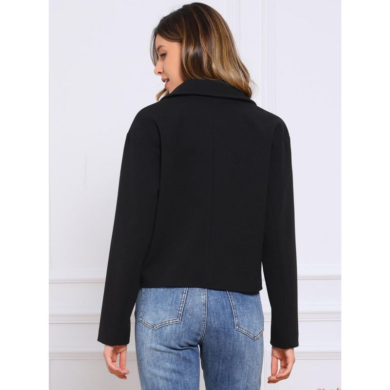 INSPIRE CHIC Women's Single Breasted Casual Turn Down Collar Long Sleeve Winter Pea Coat with Pockets Large Black