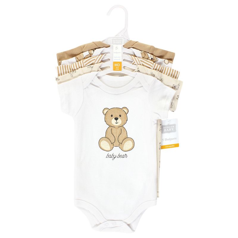 Hudson Baby Cotton Bodysuits, Teddy Bears 5-Pack, Newborn