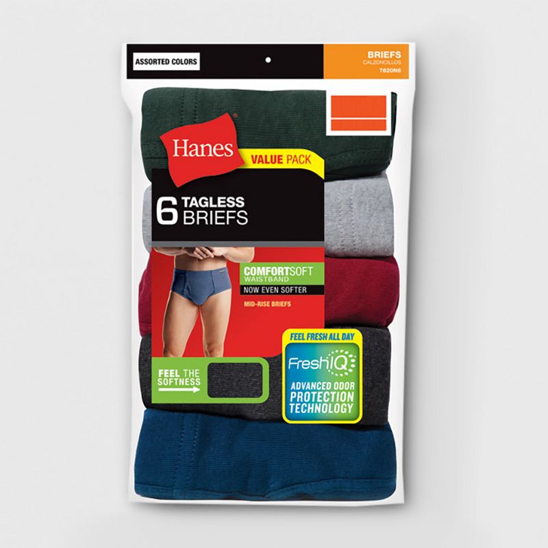 Hanes Men's Comfort Soft Waistband Mid-Rise Briefs 6pk - Blue/Green/Gray M: 100% Cotton, Tagless, Breathable, Moisture Wicking, Machine Washable