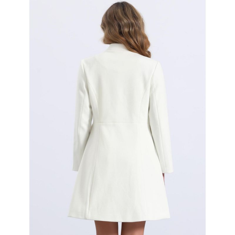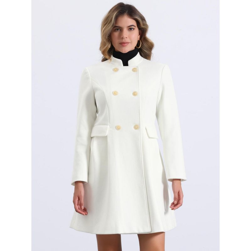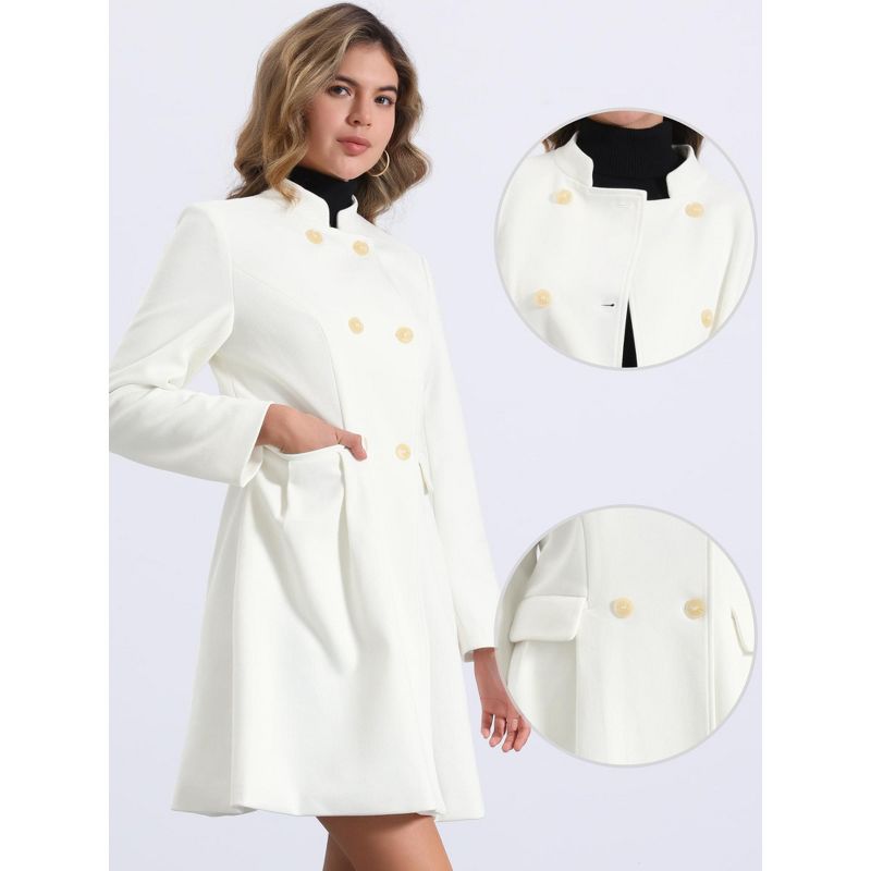 Allegra K Women's Stand Collar Double Breasted Pocket Long Sleeve Winter Coats Medium White