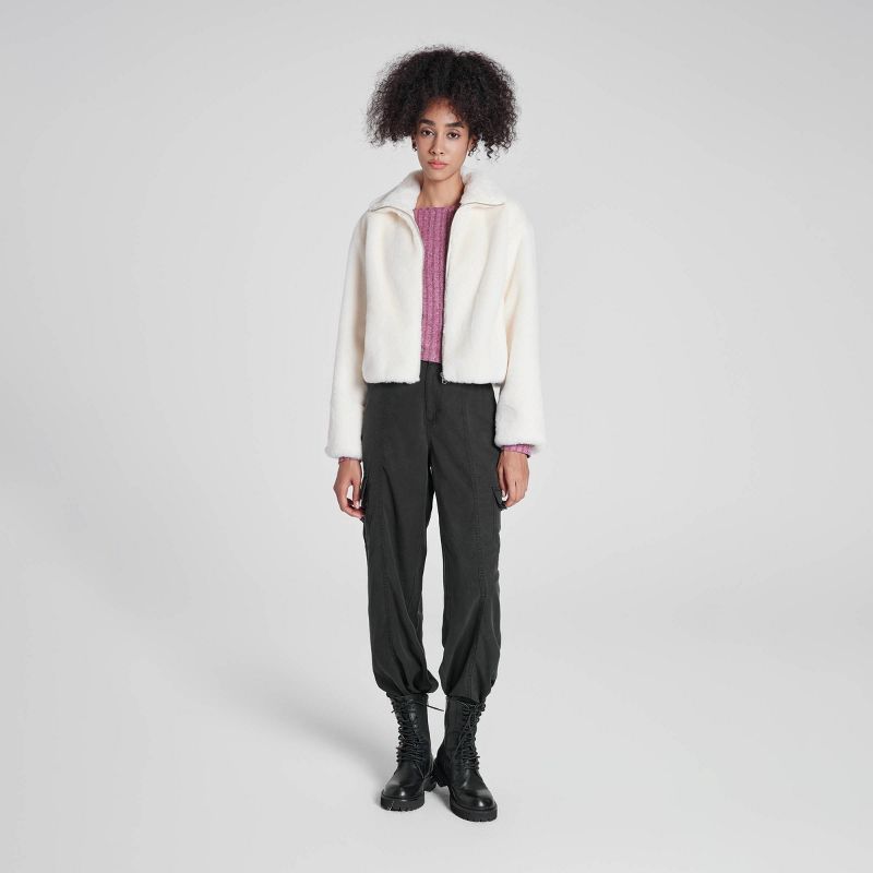 Women's Zip-Front Faux Fur Jacket - Wild Fable™ Cream XL