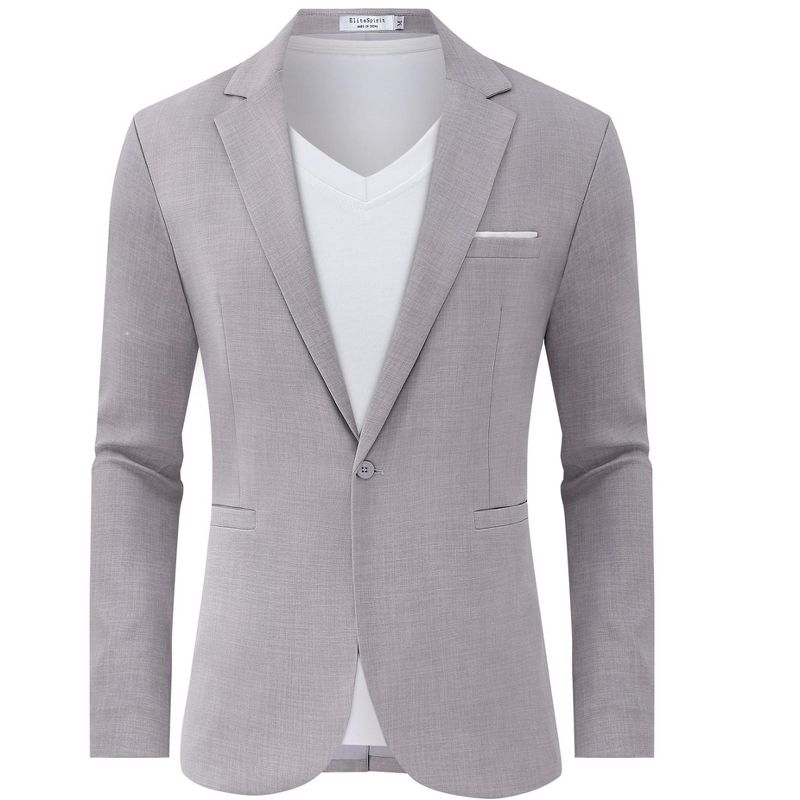 Men's Casual Blazer Jacket One Button Suit Jackets Lightweight Slim Fit Sport Coat Light Gray XL
