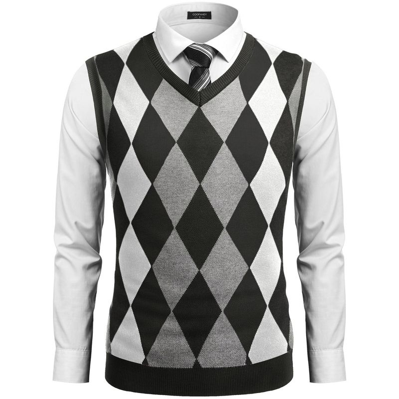 COOFANDY Men's Sleeveless V Neck Pullover Sweater Slim Fit Casual Argyle Sweater Vest Grey M