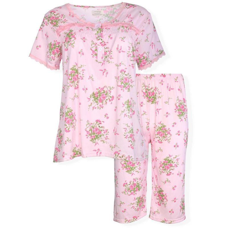 JEFFRICO Pajamas For Women Capri Set Sleepwear Soft Pajamas Short Sleeve Pajama Sleepshirt With Capri Pants Green, L