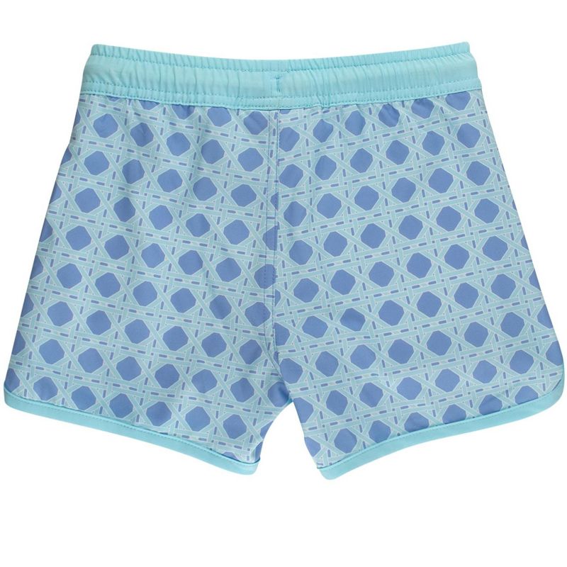 RuggedButts Baby Boys UPF50+ Sun Protected Stretch Dolphin Hem Swim Trunks - Periwinkle Blue Coastal Cane, 0-3m