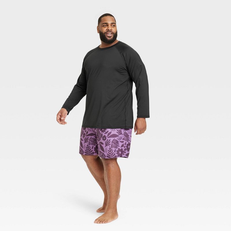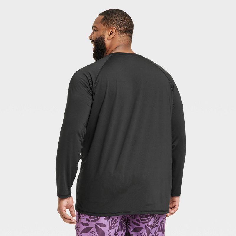 Men's Big & Tall Long Sleeve Rash Guard Swim Shirt - Goodfellow & Co™ Black 2XL: UPF 50+, Recycled Polyester