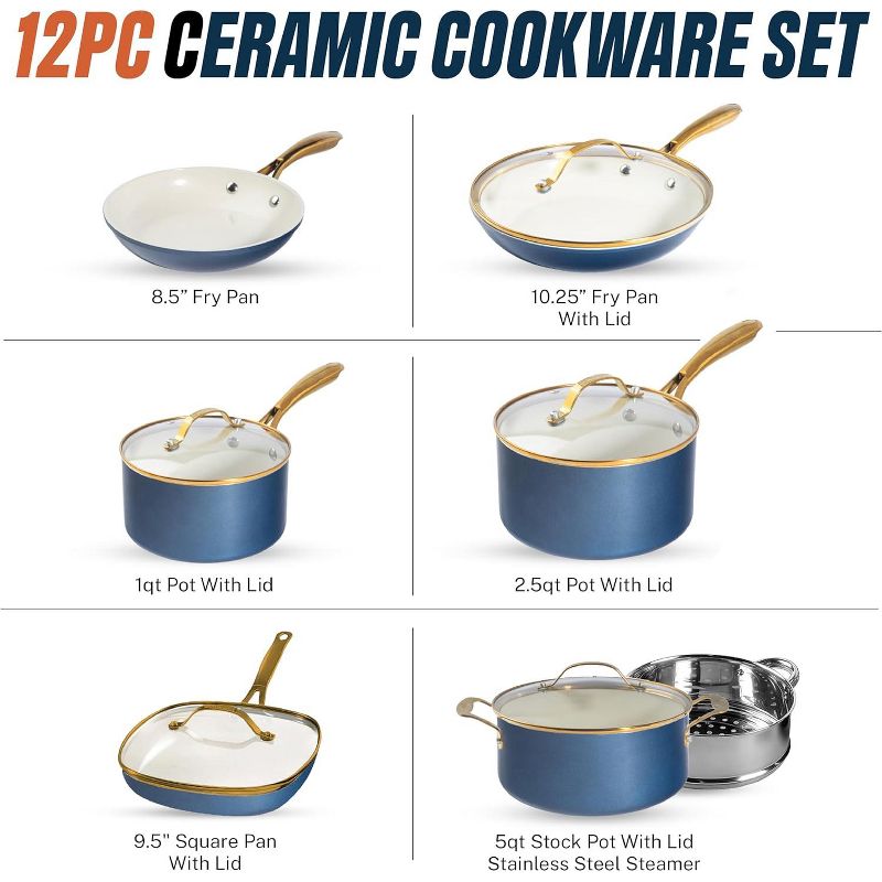 Gotham Steel Navy 12 Pc Pots and Pans Nonstick Set Ceramic Cookware Kitchen Set