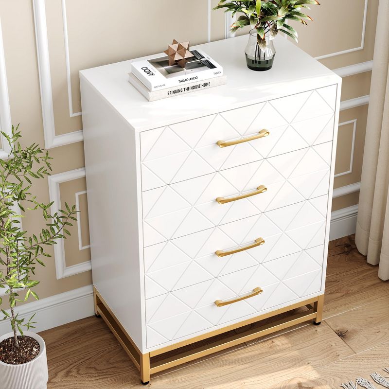 4-Drawer Modern Wood Dresser for Bedroom - Wide Storage Chest with Sleek Metal Handles, Stylish Bedroom Furniture