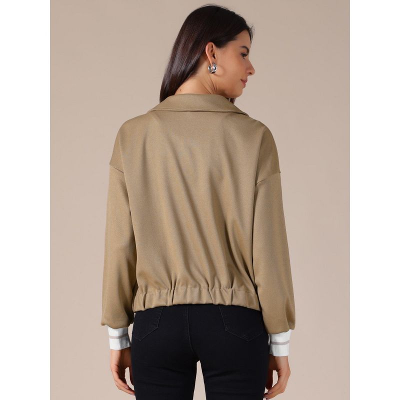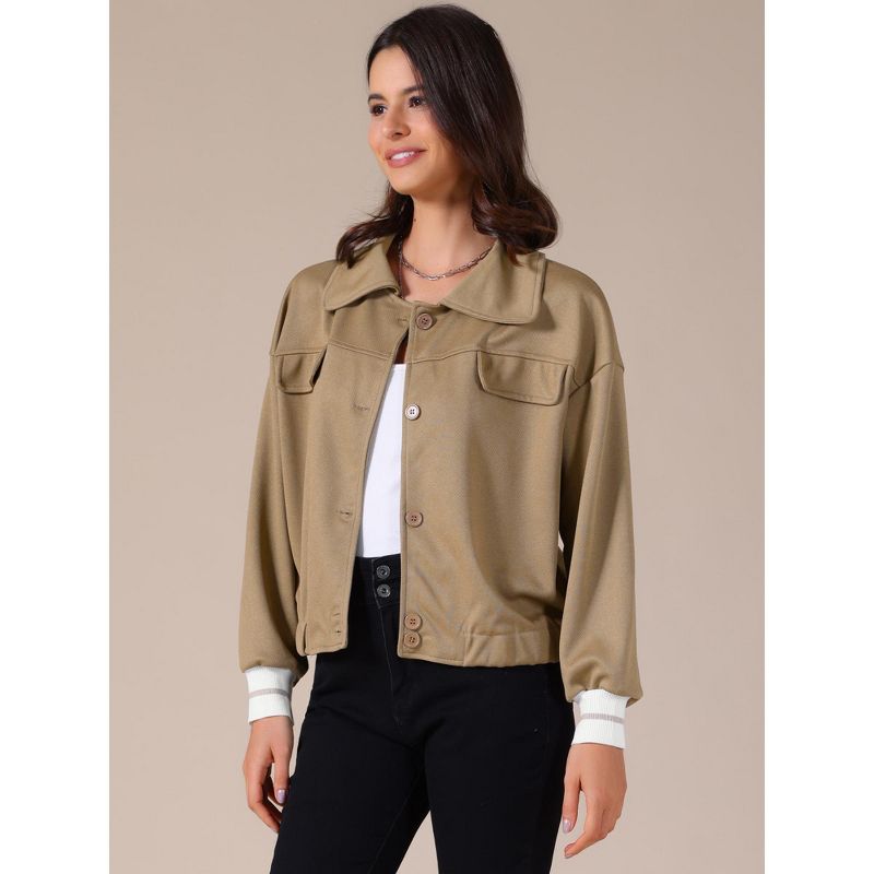 INSPIRE CHIC Women's Cropped Fall Casual Button Down Turndown Collar Long Sleeve Jacket Khaki Small