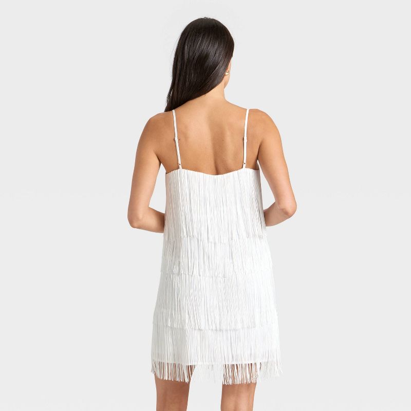 Women's Sleeveless Fringe Mini Dress - A New Day™ White M