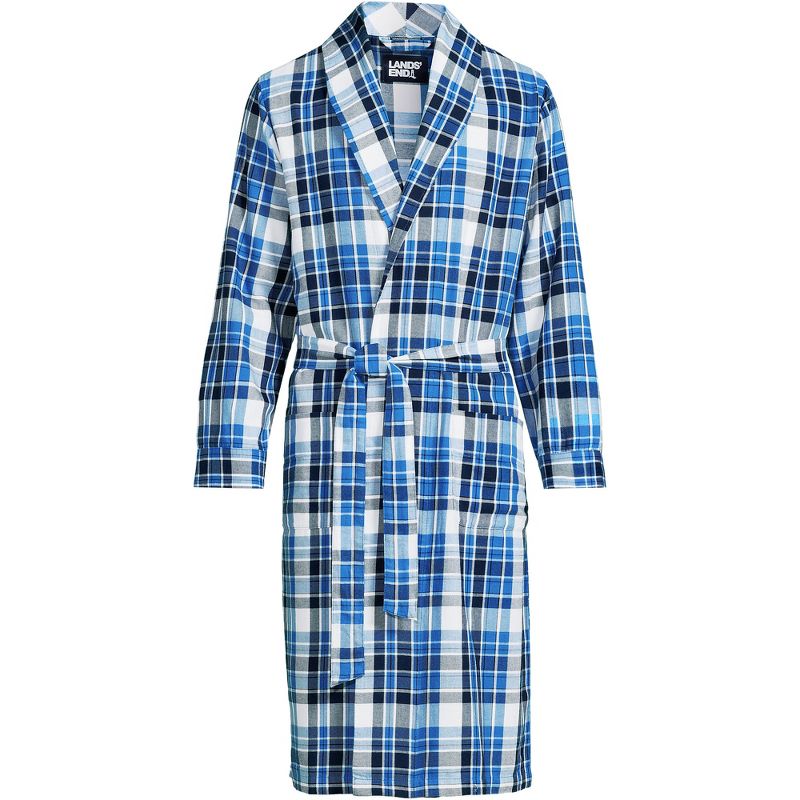 Lands' End Men's Flannel Robe - Large - Muted Cobalt Blue Plaid