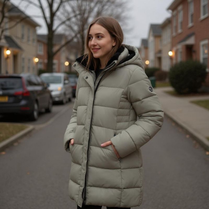 Rokka&Rolla Women's Insulated Long Winter Coat Fleece Hood Parka Jacket-Stone, size X Large