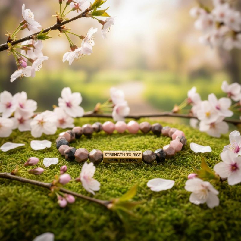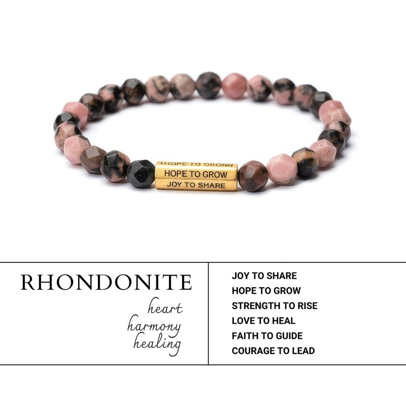 HOPE LOVE SHINE Rhodonite Beaded Bracelet – Gold-Tone Affirmation Bar Stretch Bracelet Gift for Women