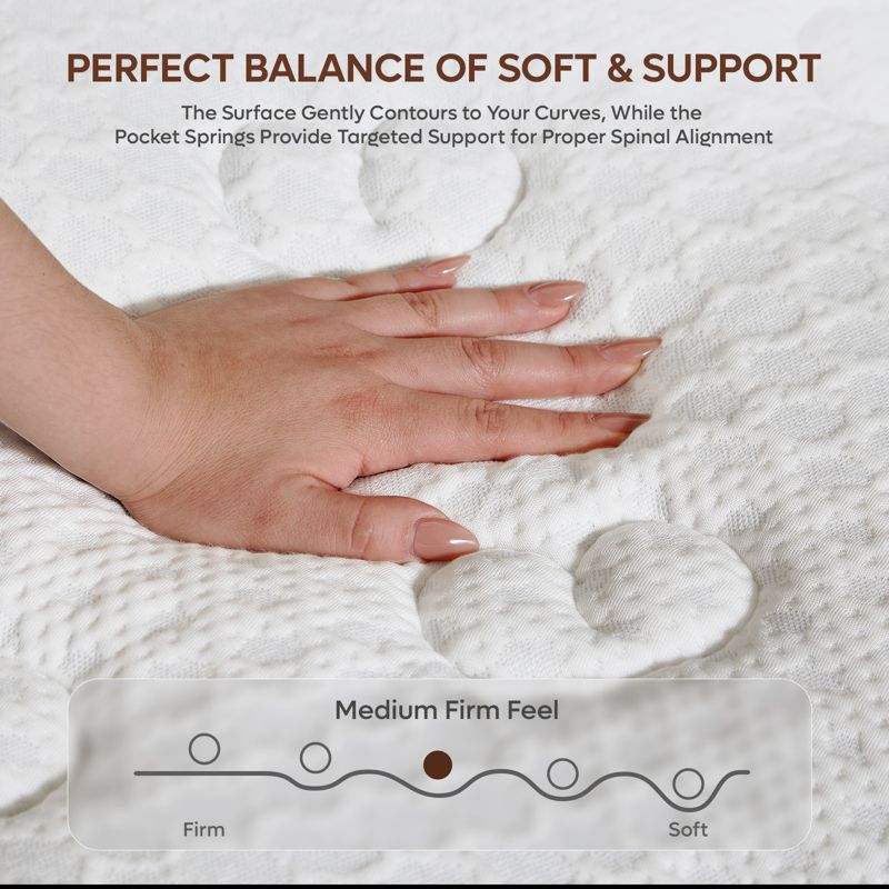 12 inch Queen Size Tencel Medium Hybrid Mattress, Plush Layer and Cooling Gel Memory Foam Mattress in a Box