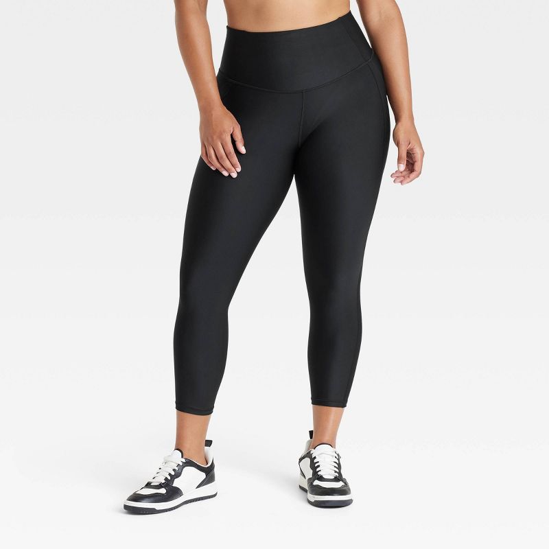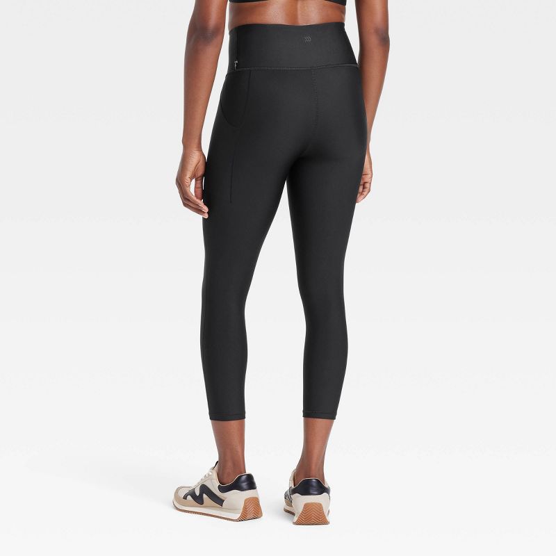 Women's Effortless Support High-Rise Pocketed Capri Leggings - All In Motion™ Black L: Moisture Wicking, Quick Dry, UPF 50+