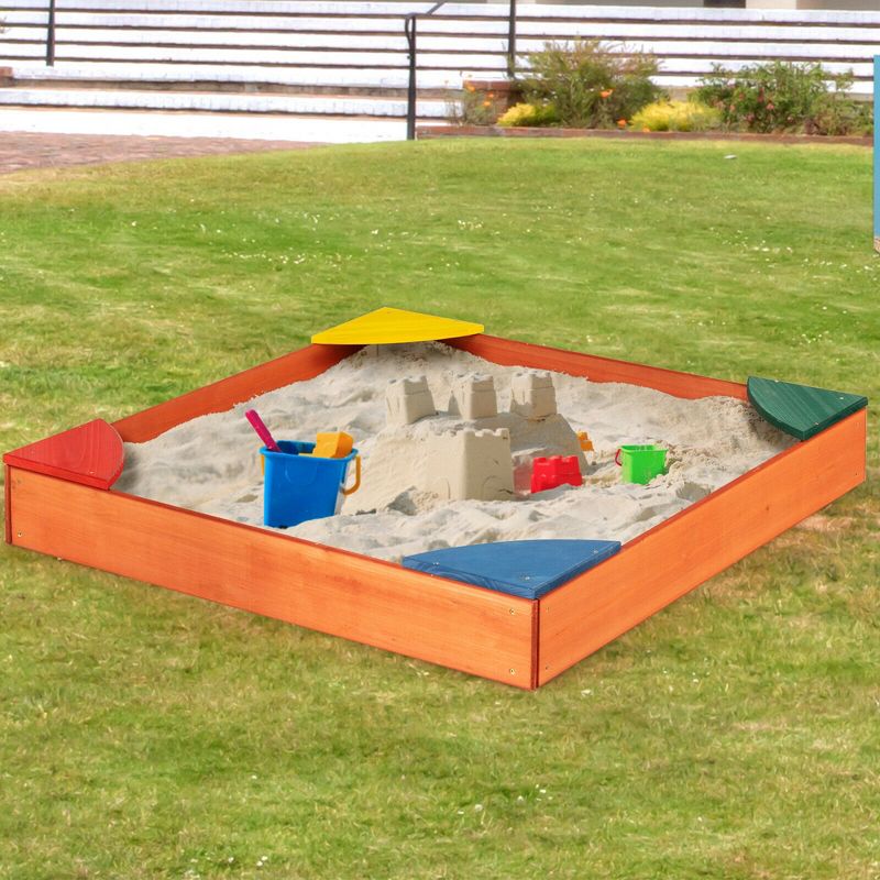 Costway Kids Wooden Backyard Sandbox W/ Built-in Corner Seating Kid's Outdoor Furniture