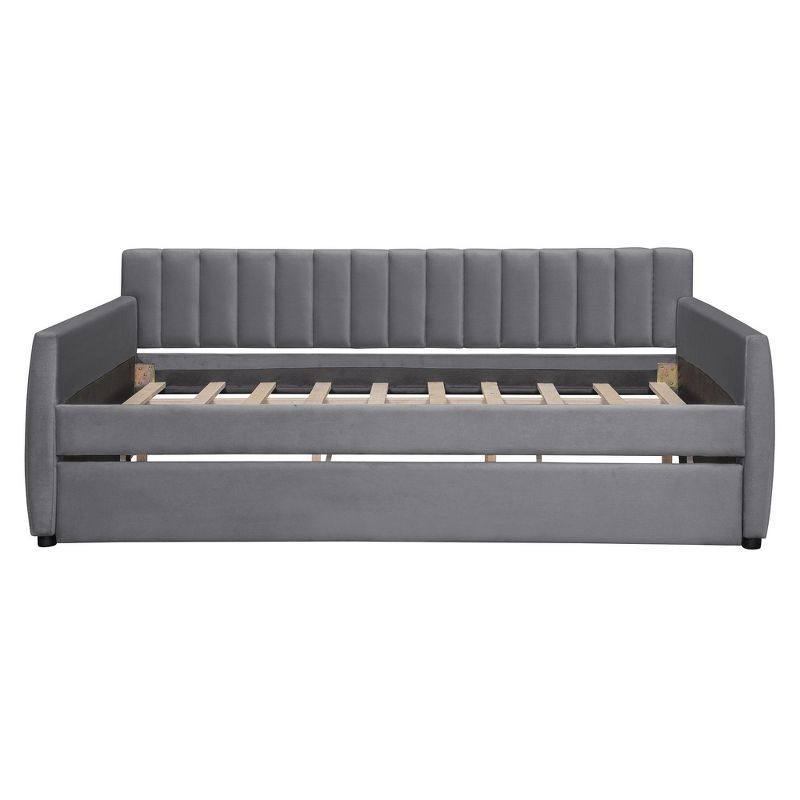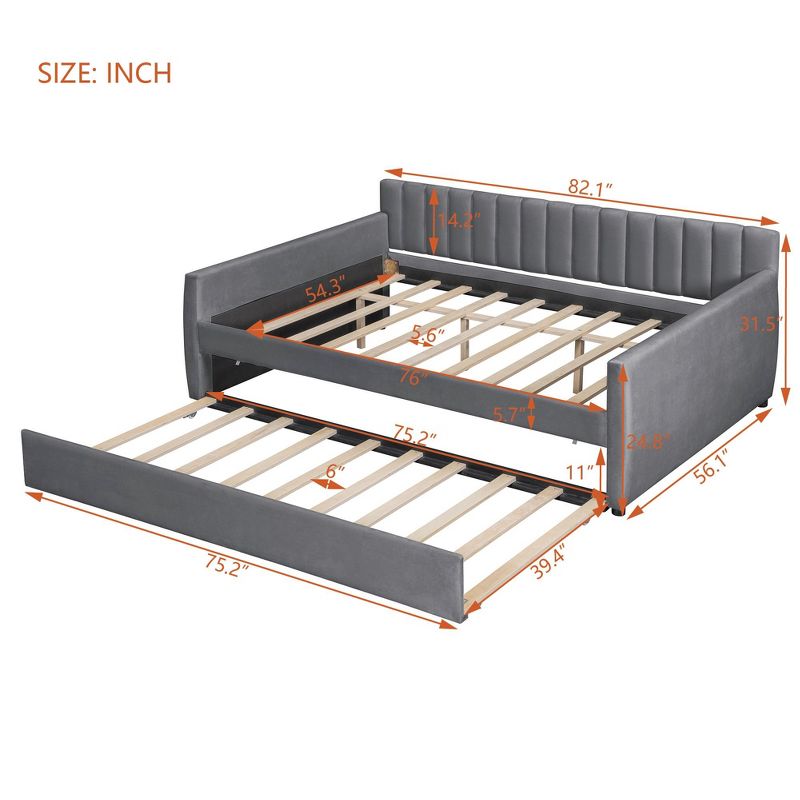 Sapphtopaz Daybed Full Size Bed Frame with Trundle Wood Slat Support Velvet Bedroom Furniture, Easy Assembly, No Box Spring Needed, Gray