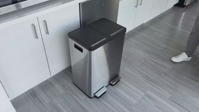 iTouchless 16 Gallon Stainless Steel Dual Compartment Combo Step Pedal Trash Can and Recycle Bin with Odor Filters for Home, Office, Kitchen