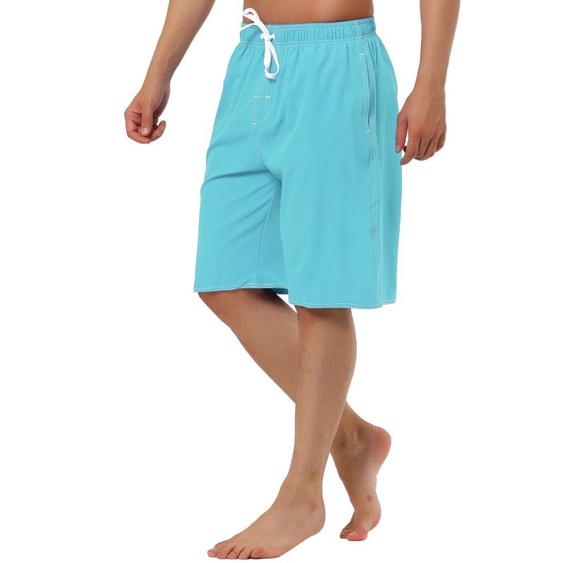 TATT 21 Men's Summer Casual Solid Color Drawstring Elastic Waist Beach Board Short Light Blue 36