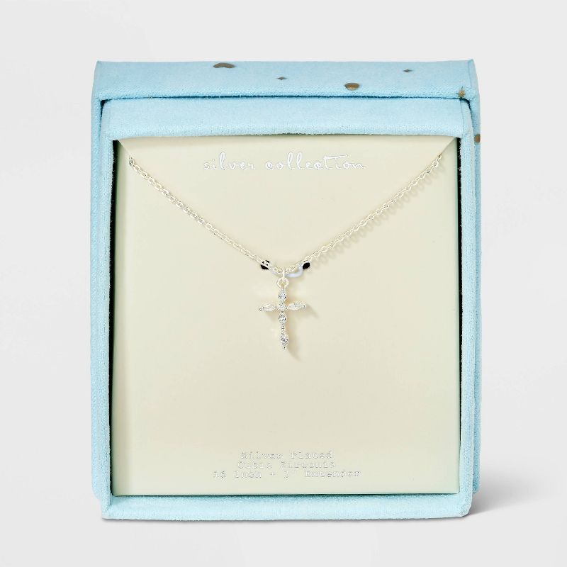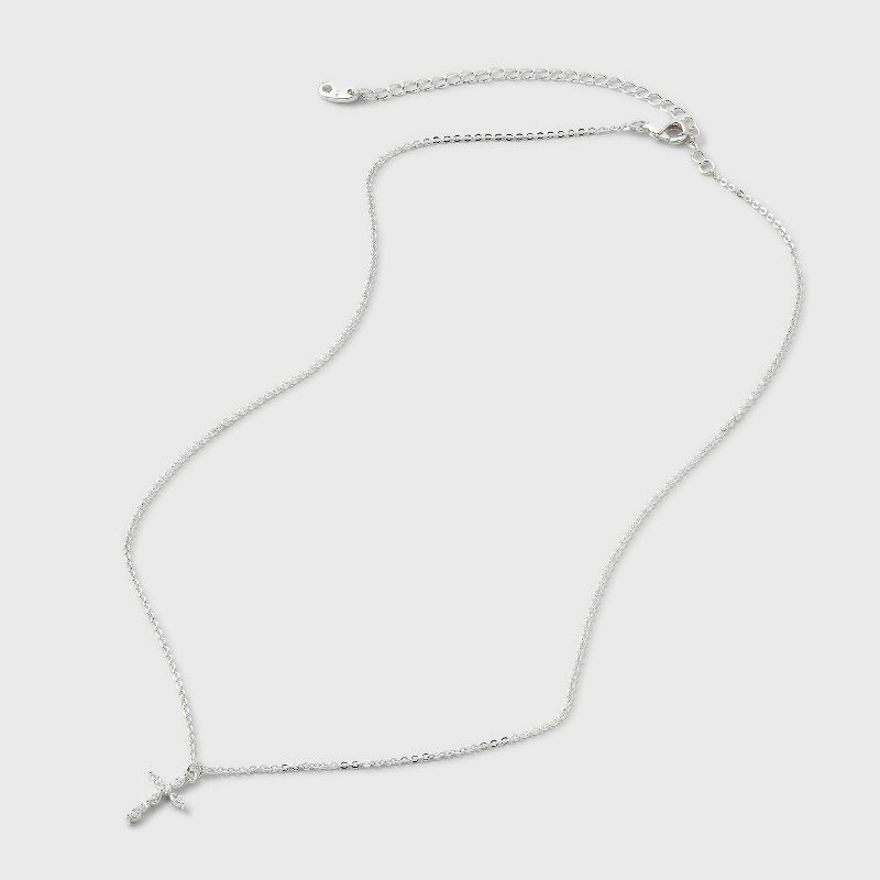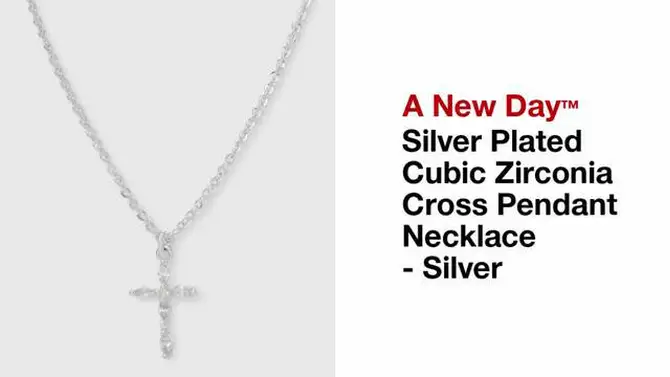 Silver Plated Cubic Zirconia Cross Pendant Necklace - A New Day™ Silver
