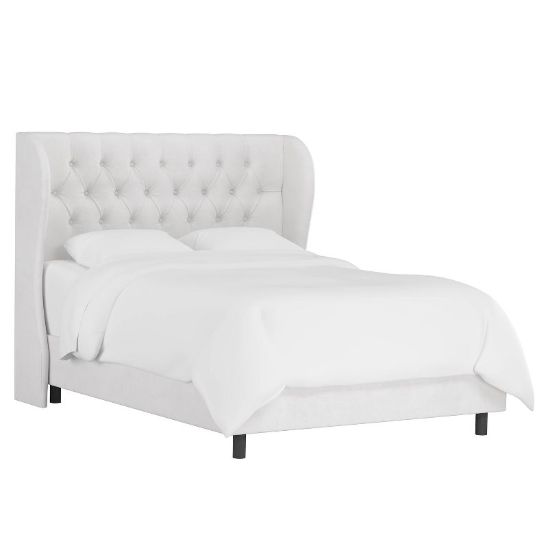 Skyline Furniture Queen Tufted Upholstered Wingback Bed Velvet White: Elegant Bedroom Furniture, Plywood & Pine Frame