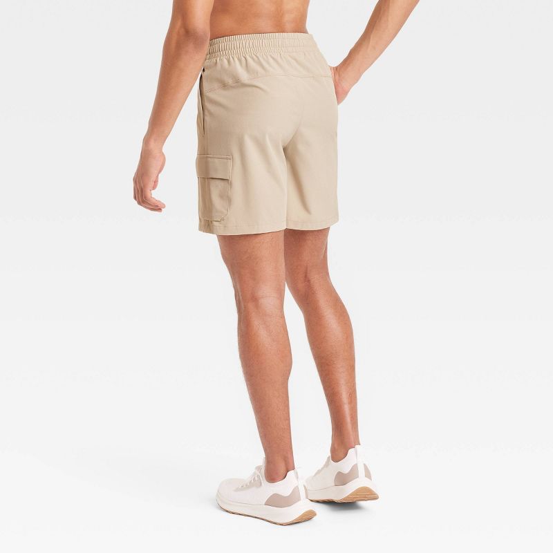 Men's 7" Cargo Shorts - All In Motion™ Almond L: Moisture Wicking, Quick Dry, 4-Way Stretch, UPF 50+