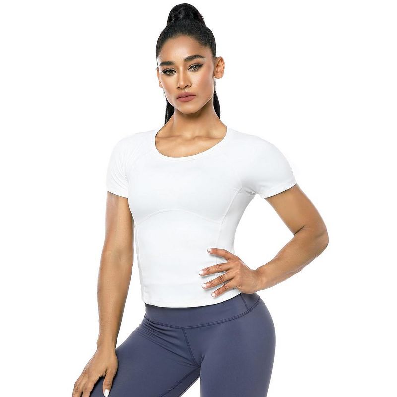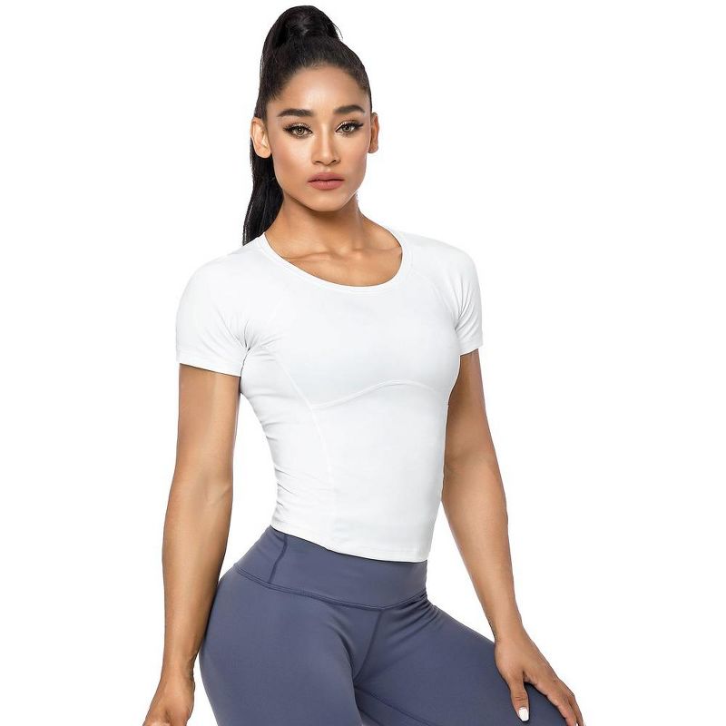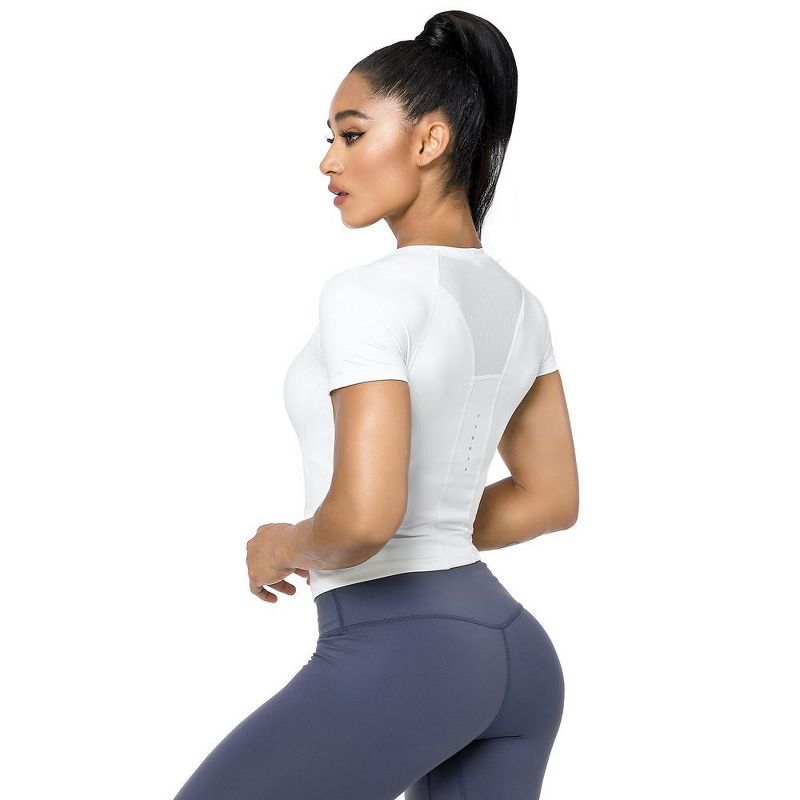 Workout Crop Tops for Women Short Sleeve Workout Shirts for Running Gym Yoga Athletic Exercise White M