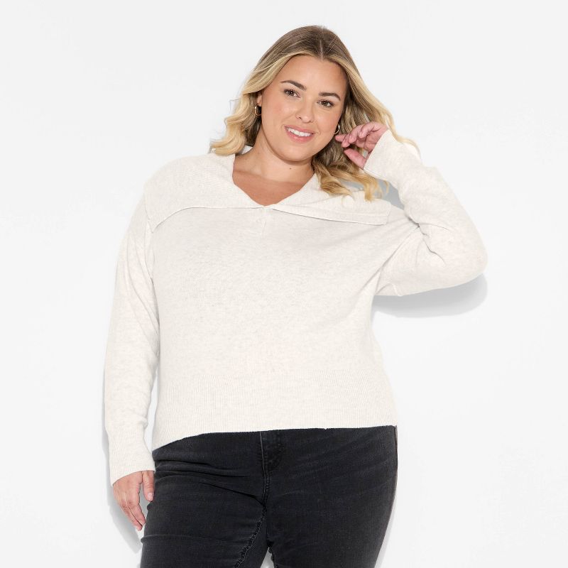 Women's Button-Down Collar Henley Sweater - Wild Fable™ Heather Gray 3X