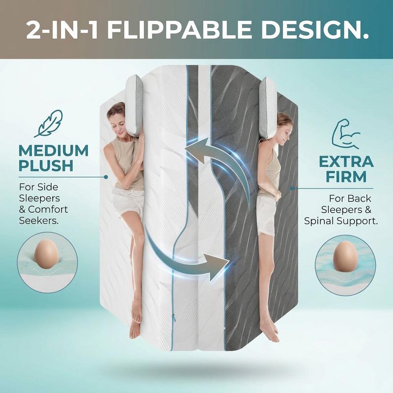Dyonery 8 Inch Queen Mattress in a Box, Reversible Memory Foam Bed with Washable Cover, CertiPUR-US Certified Firm & Medium Support