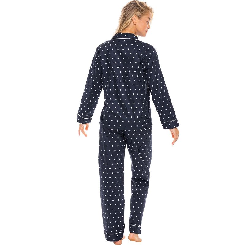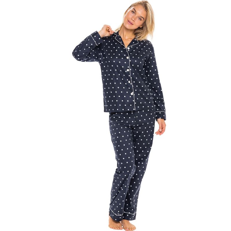ADR Women's Lightweight Button Down Pajama Set, Long Cotton Pjs Black and White Polka Dot XL