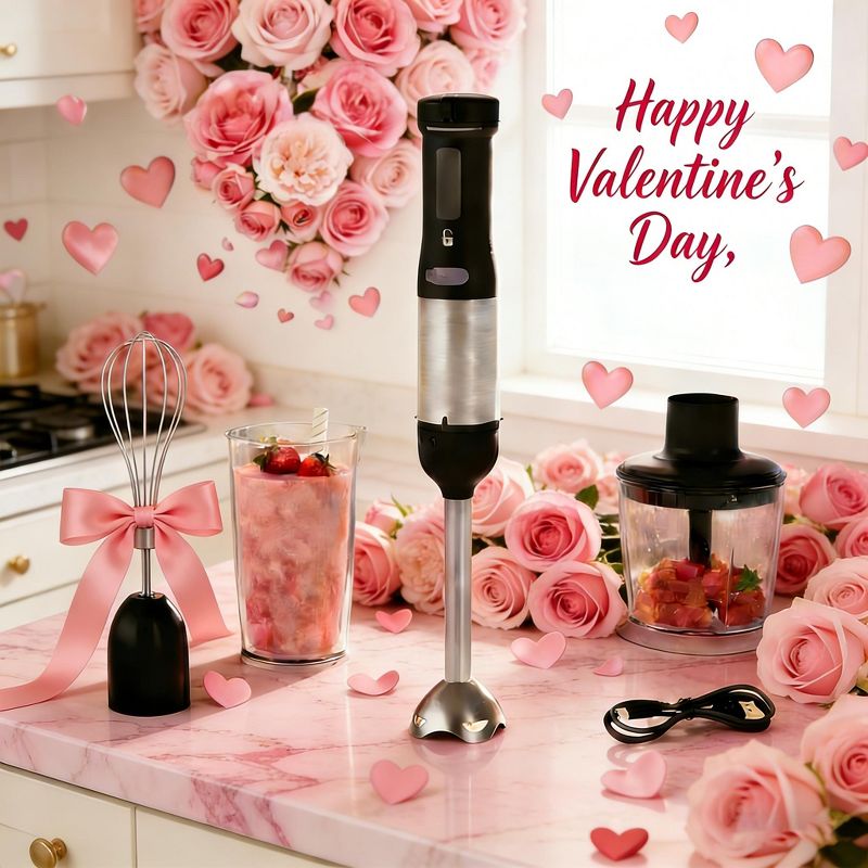 WHALL Cordless Hand Blender, 5-in-1 Immersion Blender with 2000mAh Battery, Beaker, Chopper, Whisk, Milk Frother