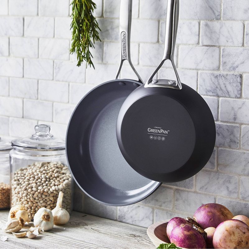 GreenPan Paris Pro Hard Anodized Healthy Ceramic Nonstick 8" and 10" Open Frying Pan Set - Gray