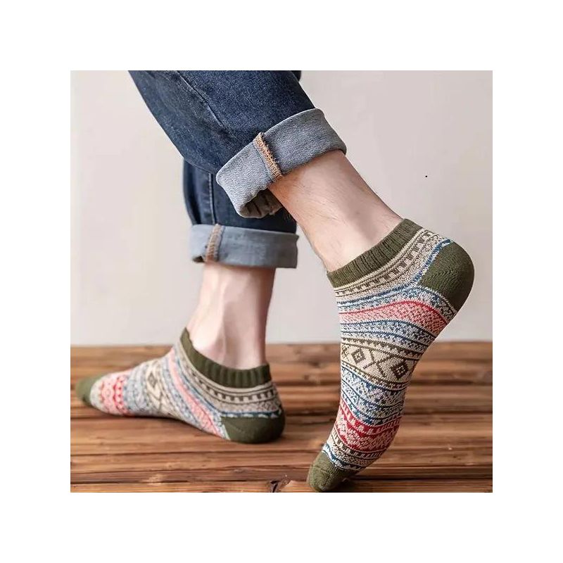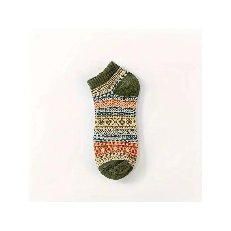 Warm Woolen Block Knitting Ankle Socks - Men's Sizes, Adult Large from the Sock Panda - Green