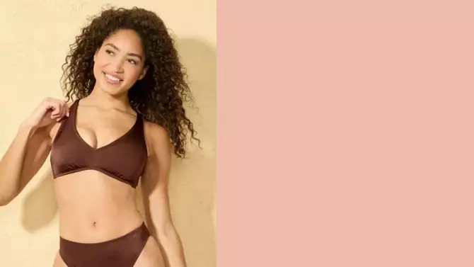 Women's Shiny Ribbed Plunge V-Neck Bralette Bikini Top - Shade & Shore™ Brown S