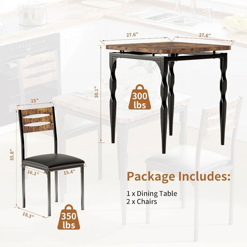 3-Piece Dining Set for Small Spaces, Table & 2 Chairs with Spiral Legs, Compact Kitchen Table Set for Apartments