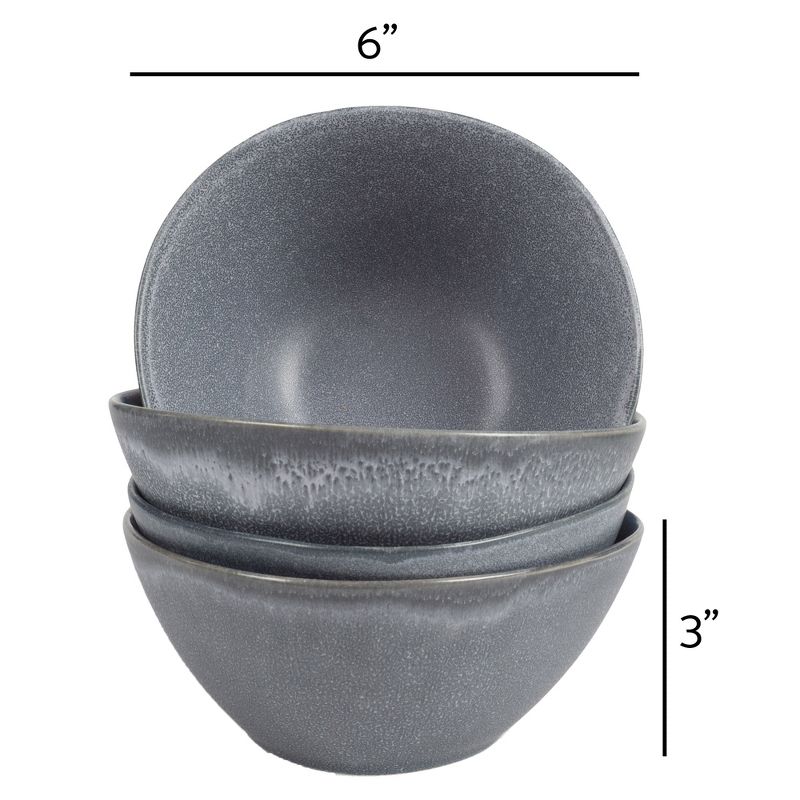 Modern Chic Smooth Ceramic Stoneware Dinnerware Bowls Set of 4 - Slate Grey
