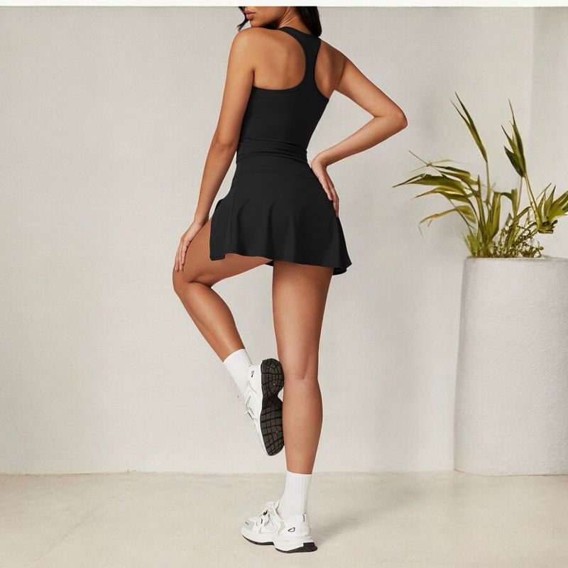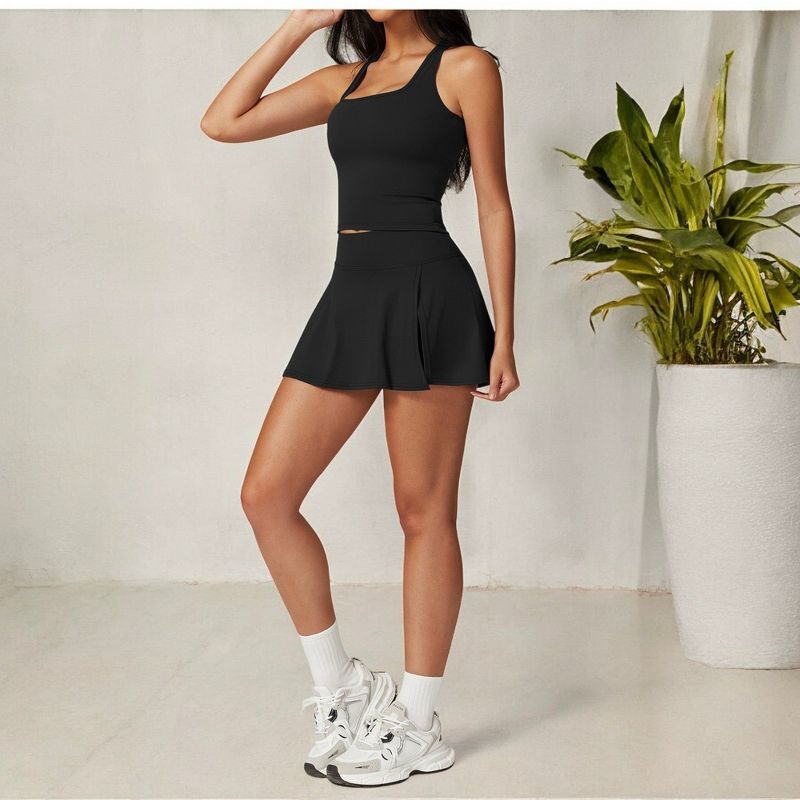 Anna-Kaci Active Women's Flare Athletic Skort with Built-in Shorts High Waist - X Large, Black